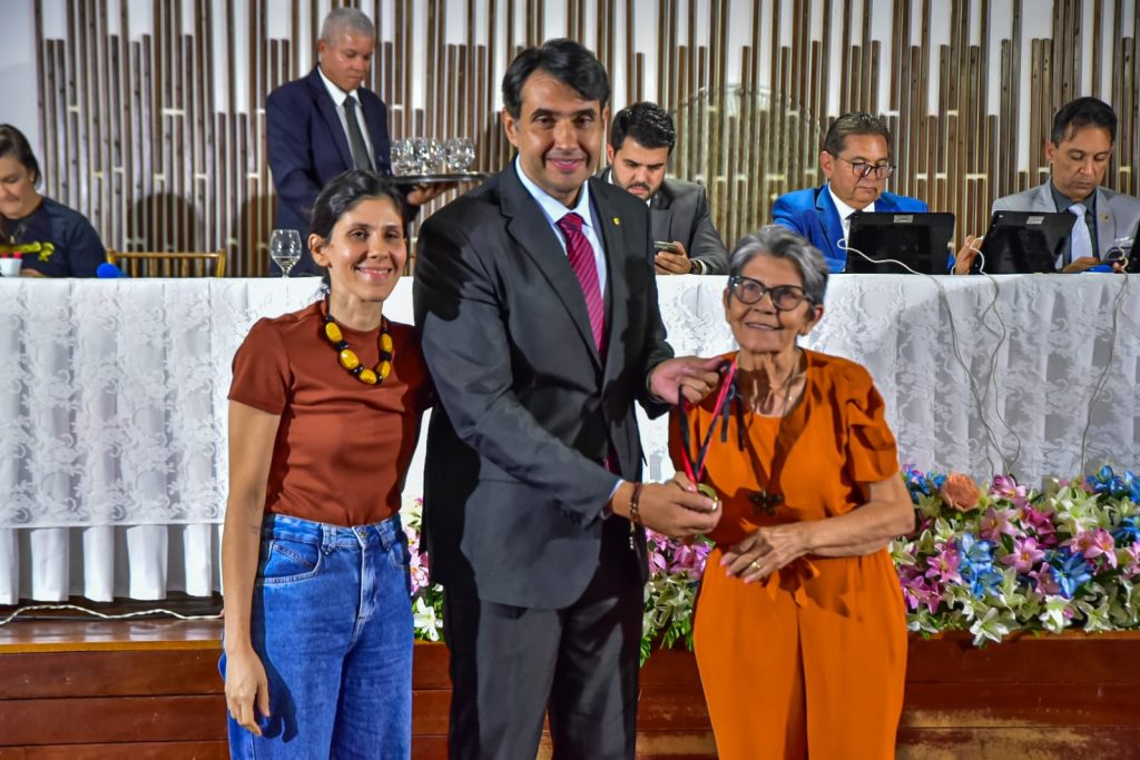 A Assembleia Legislativa da Paraíba (ALPB) realizou, nesta quarta-feira (18), sessão solene, na cidade de Sousa, no Sertão paraibano, para entregar a Medalha Governador Pedro Gondim para a professora Geny Ferreira pelos relevantes serviços prestados ao estado. A homenagem foi proposta pelo deputado André Gadelha. O evento aconteceu durante a sessão itinerante e contou com a presença de autoridades, políticos e familiares.