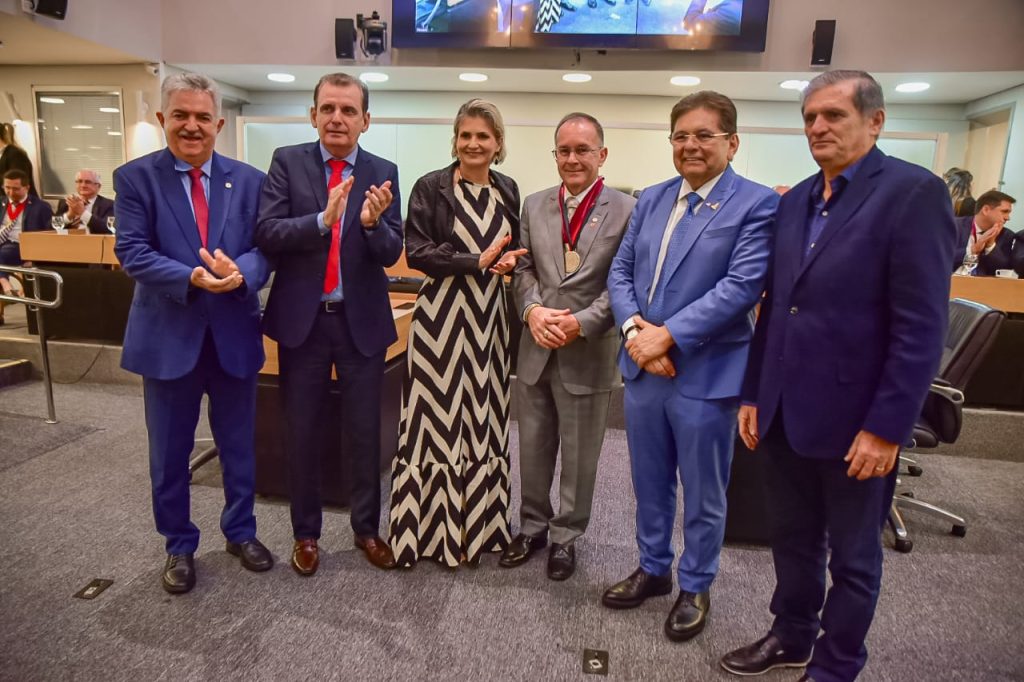 A Assembleia Legislativa da Paraíba (ALPB) realizou, na tarde desta quarta-feira (29), sessão solene para entregar a Medalha de Mérito Jurídico Tarcísio de Miranda Burity ao advogado Ricardo Tadeu Feitosa Bezerra. A homenagem, proposta pelo deputado Chico Mendes, aconteceu no Plenário da Casa e contou com a presença de autoridades, amigos e familiares do homenageado.