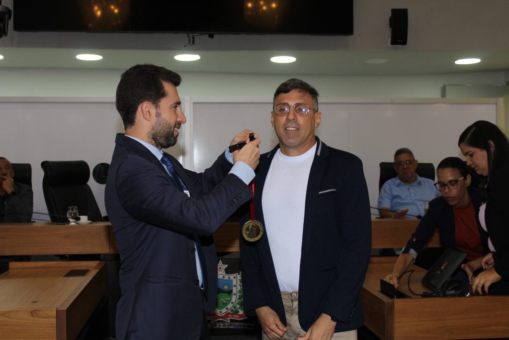 A Assembleia Legislativa da Paraíba (ALPB) concedeu, nesta quinta-feira (31), a Comenda de Talento Esportivo Genival Leal de Menezes ao desportista Leucio Laerte Barbosa Filho, conhecido como “Leucinho”, em reconhecimento à sua contribuição ao esporte no estado. A solenidade foi proposta pelo deputado Michel Henrique e reuniu atletas, amigos e familiares do homenageado.