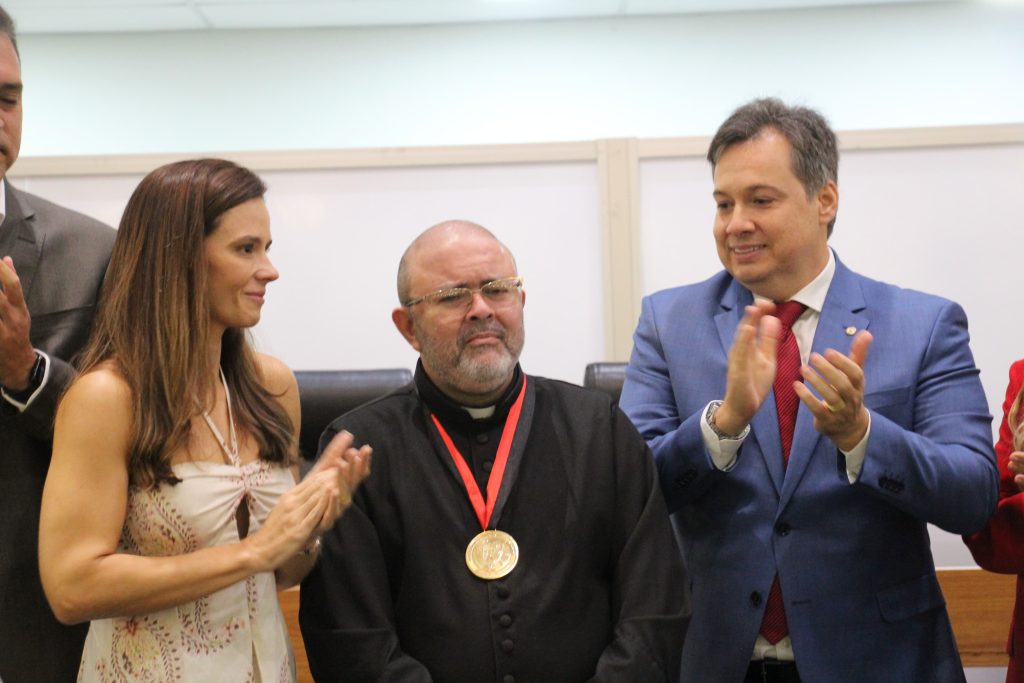 A Assembleia Legislativa da Paraíba (ALPB) realizou sessão solene, na tarde desta terça-feira (18) para outorga da Medalha Epitácio Pessoa – a mais alta honraria da Casa – ao Padre George Batista Pereira Filho, fundador da Comunidade Católica Filhos da Misericórdia e da Fundação São Padre Pio de Pietrelcina, em João Pessoa, “pelos relevantes serviços prestados ao estado”. A solenidade, proposta pelo deputado Júnior Araújo, aconteceu no Plenário “Deputado José Mariz”, e contou com a presença de autoridades, membros do clero e pessoas assistidas pelos projetos sociais do homenageado.