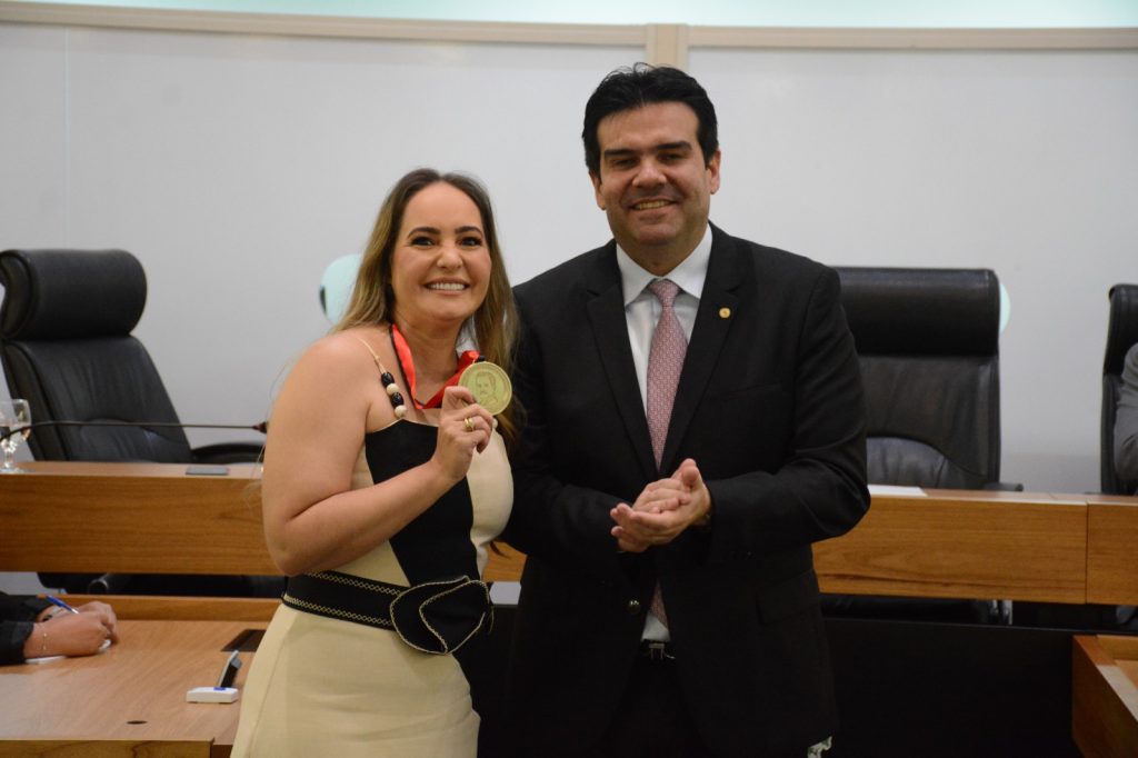 A Assembleia Legislativa da Paraíba (ALPB) realizou sessão solene, nesta quinta-feira (8), para concessão da Medalha Epitácio Pessoa, à senhora Mônica Tejo Cavalcanti. O reconhecimento pelos seus relevantes serviços prestados foi proposto pelo deputado Eduardo Carneiro e aprovado por unanimidade no plenário da Casa Epitácio Pessoa. A Comenda é a maior honraria do Poder Legislativo estadual.