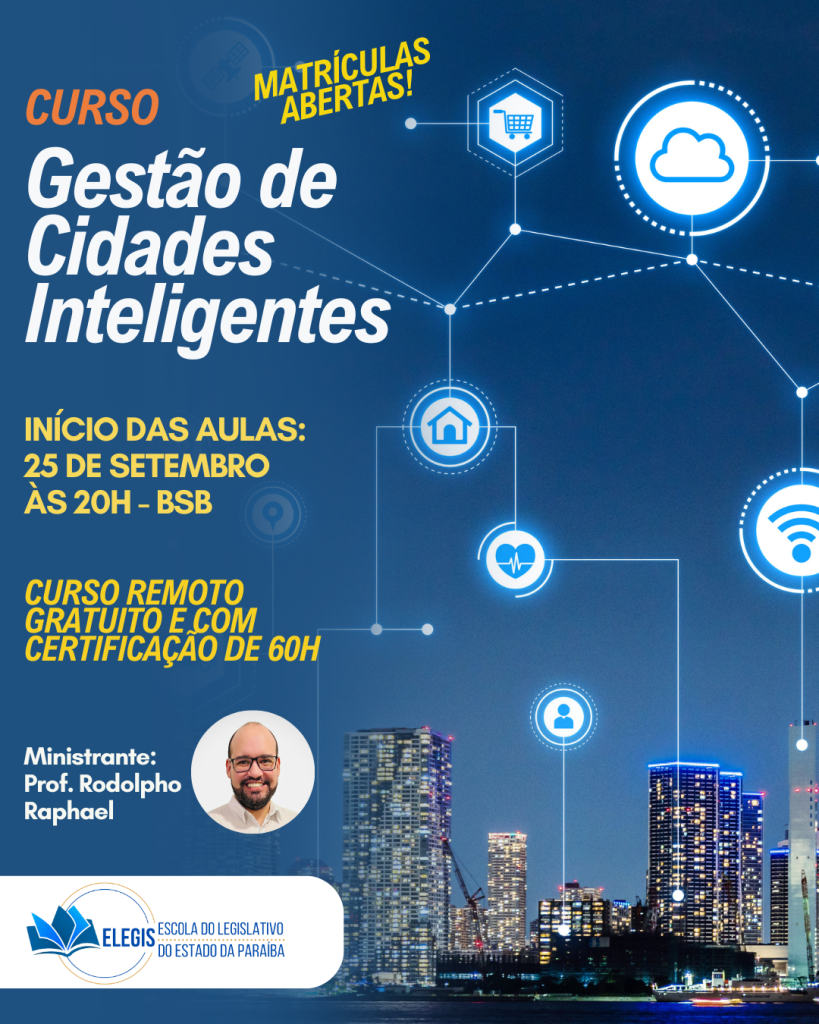 A Escola do Legislativo da Paraíba (ELEGIS) está com inscrições abertas para o curso Gestão de Cidades Inteligentes, que começa nesta quinta-feira (25), às 19h, em formato remoto. A iniciativa gratuita oferece certificação de 60 horas e já contabiliza mais de 500 participantes confirmados, demonstrando o interesse crescente da população em temas ligados à inovação na administração pública.