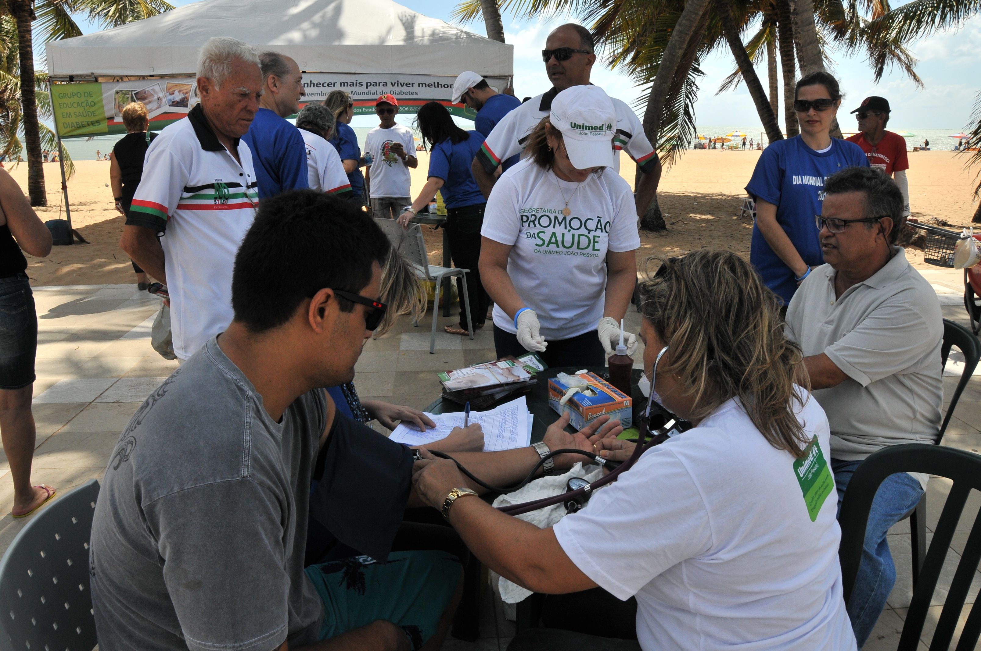 Nesta sexta-feira (15), dentro da programação da campanha, uma ação foi realizada pela manhã na praia do Cabo Branco, em alerta para a prevenção do diabetes. Foram realizados testes de glicemia, verificação de pressão arterial, e atendimento com psicólogo, enfermeiros e médicos.