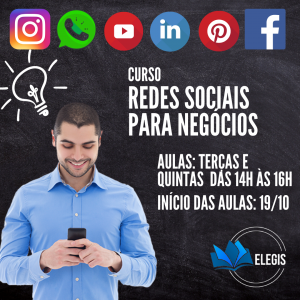A Escola do Legislativo da Paraíba- ELEGIS PB abriu nesta segunda-feira vagas para o curso de capacitação em Redes Sociais para Negócios que tem início no próximo dia 19 de outubro. As aulas que acontecem de forma remota, se dará às terças e quintas-feiras das 14h00 às 16h00.
