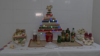 Decoração natalina do Novo Alvorecer é inspirada no ECOLEGIS e valoriza o uso de materiais sustentáveis.