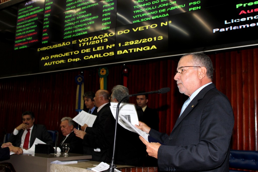 O deputado Carlos Batinga (PSC) lamentou a postura dos deputados da situação, que durante a sessão ordinária da Assembleia Legislativa da Paraíba (ALPB), desta nesta quarta-feira (14), manteve o veto do Governo do Estado ao projeto de Lei 1292/2013, de sua autoria, que dispõe sobre a reserva de vagas, em prestações de serviços e obras públicas, para trabalhadores paraibanos, nas empresas contratadas pelo Estado.